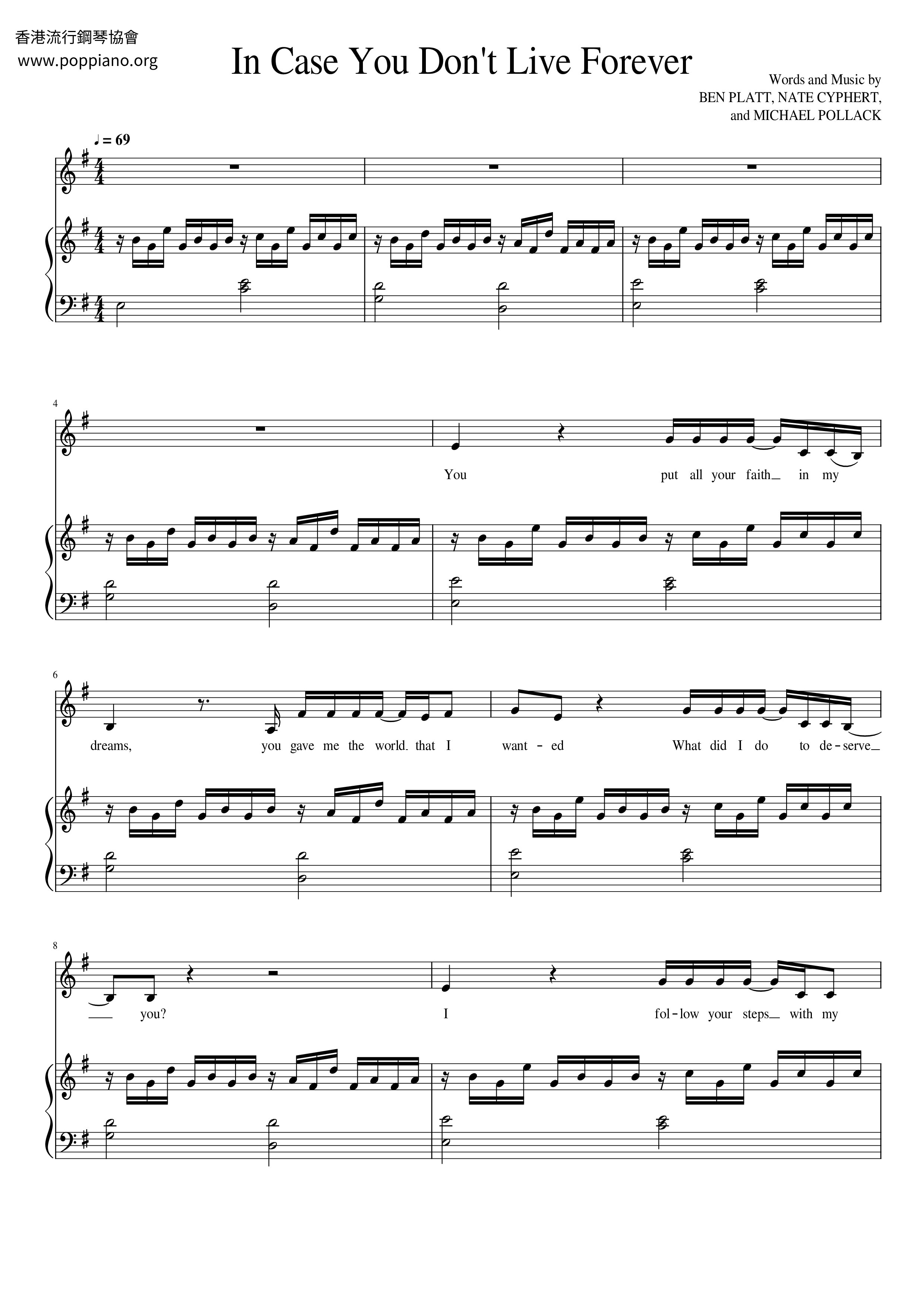 . Free Shipping on Qualified Orders. Up to 3 cash back Words. Ben Platt - In Case You Dont Live Forever Free Sheet Music PDF for Piano Hello music.