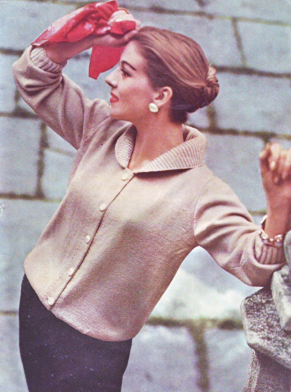 Vintage Vogue 50s Cardigan Jacket Knitting Pattern Pdf Etsy